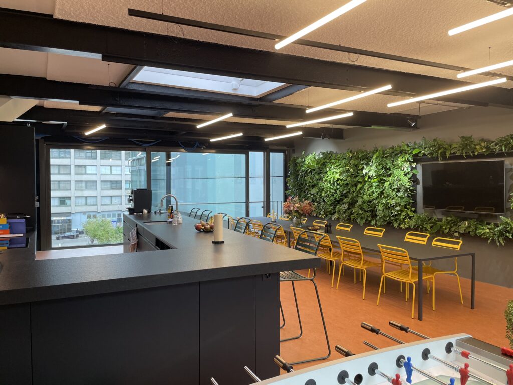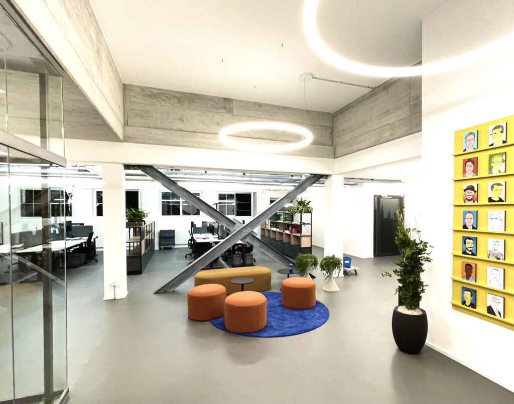 Ausgrüstet mit diesem Wissen und einer Testplanung fand AVANTEC Ende 2022 im Steinfels-Areal in Zürich eine 900 m² grosse Fläche in der ehemaligen Seifenfabrik. Auf Basis der erarbeiteten Ziele und Bedürfnisse übernahmen wir Planung und Realisierung des neuen Büros – von der Gestaltung einer flexiblen räumlichen Struktur bis zur Koordination aller Gewerke während des laufenden Innenausbaus.