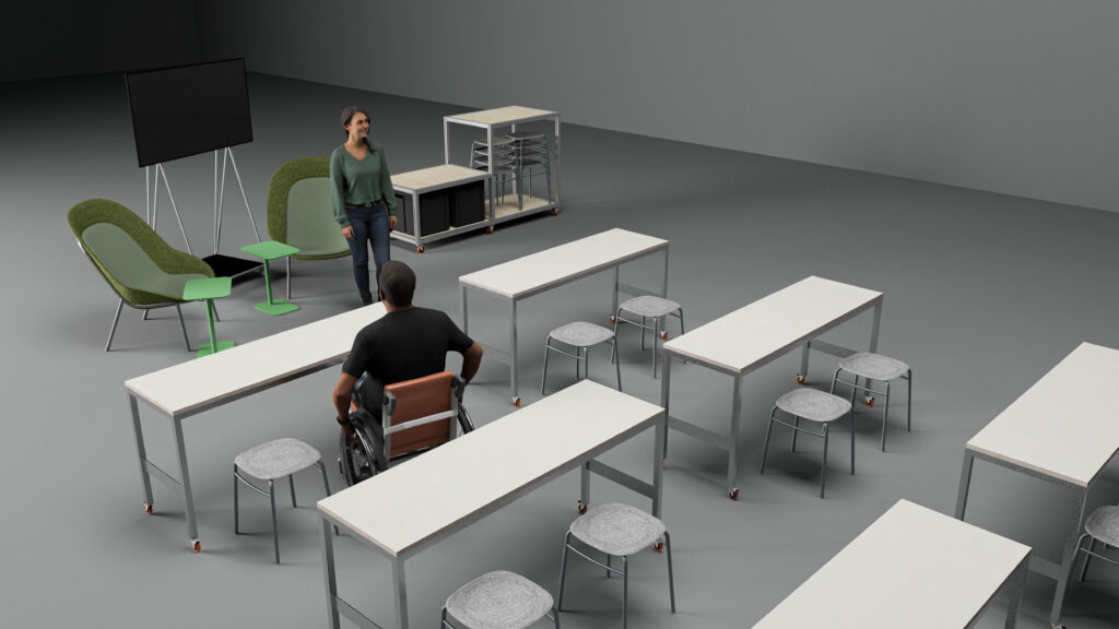 Zusammen mit dem Projektteam machten wir uns über die grundsätzlichen Anforderungen und Funktionsweise der Flächen Gedanken. Durch das Anpassen der Layouts und teils neuentwickelter modularer Möblierung konnten wir die Logik und Benutzerfreundlichkeit der Angebot in ihrem Space bedeutend verbessern. Dank hochmodularen Elementen haben wir sowohl die Flexibiliät der Räumlichkeiten, als auch die Kosten- und Flächeneffizienz maximiert.