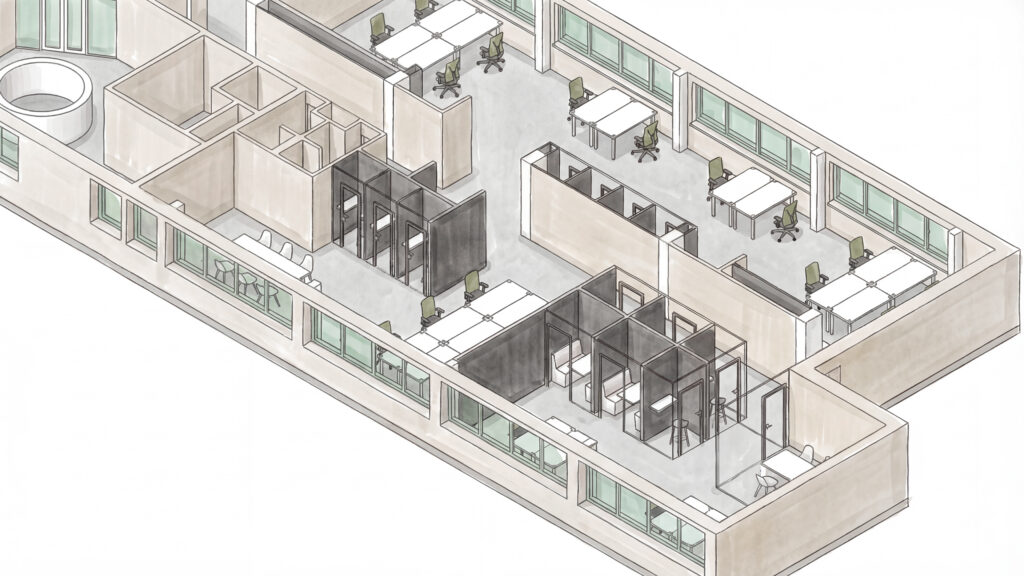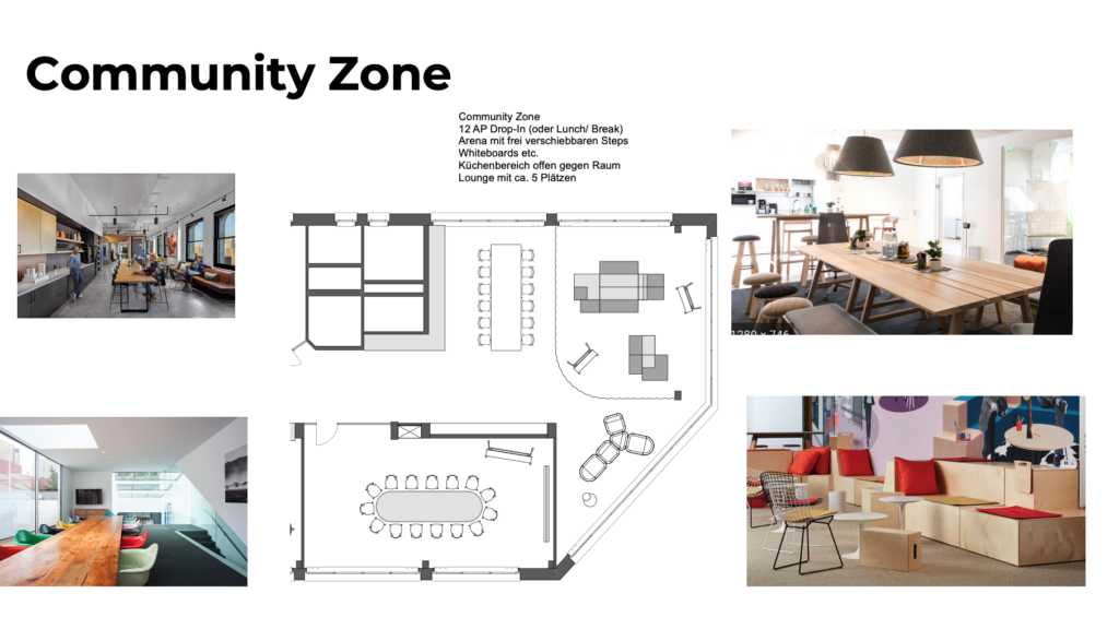 Unsere Leistungen: Innovationsberatung, Entwicklung einer Bürostrategie, Layouts, Kostenschätzung
