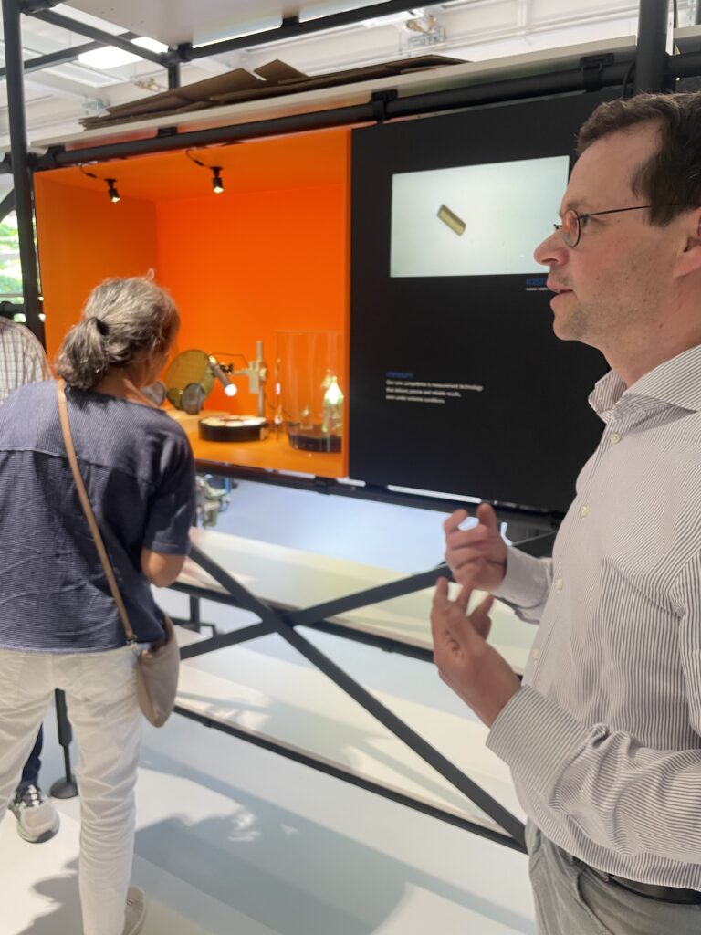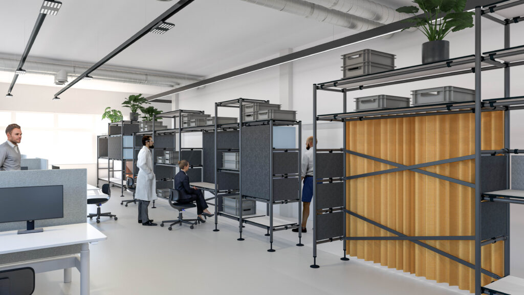 Als wir dazukamen, war die F&E-Etage überfüllt mit Mustern, Werkzeugen und Material – funktional, aber wenig inspirierend. Doch der Fachkräftemangel im Hightech-Bereich ist real. Ingenieur:innen und Forscher:innen erwarten Arbeitsumgebungen, in denen sie selbstbestimmt arbeiten können, in denen alles verlässlich funktioniert und sich der Raum flexibel an ihre Aufgaben anpasst. Genau dafür sollte die F&E-Fläche neu gedacht werden: mehr Innovation, mehr Zusammenarbeit, mehr Sichtbarkeit nach innen und aussen.